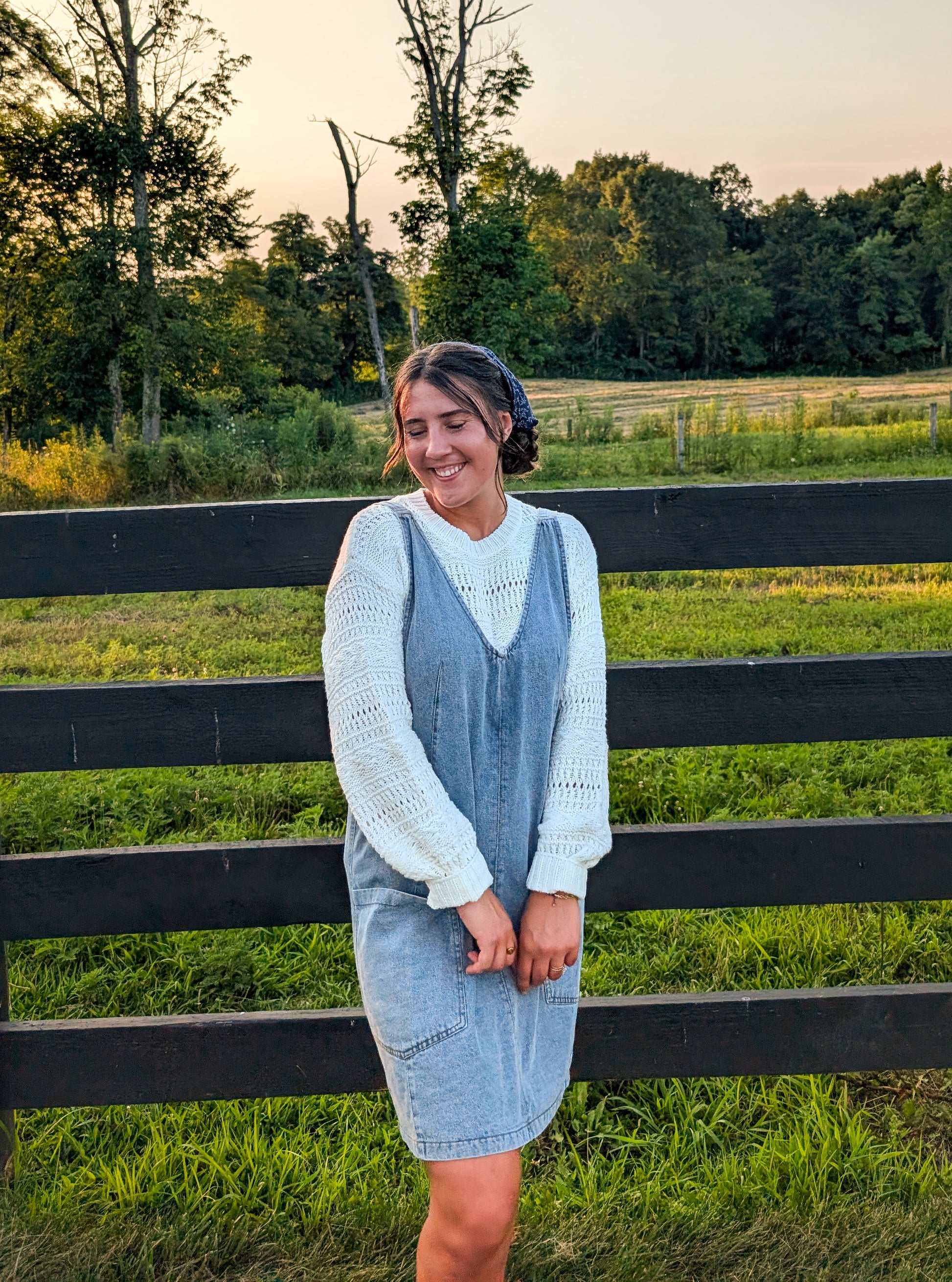 The Everett Jumper- What a cutie she is! Perfect for fall layering and is 100% Cotton. She has adjustable straps, and deep front pockets. If you want to add just one thing to your closet this month, let it be the Everett Jumper.