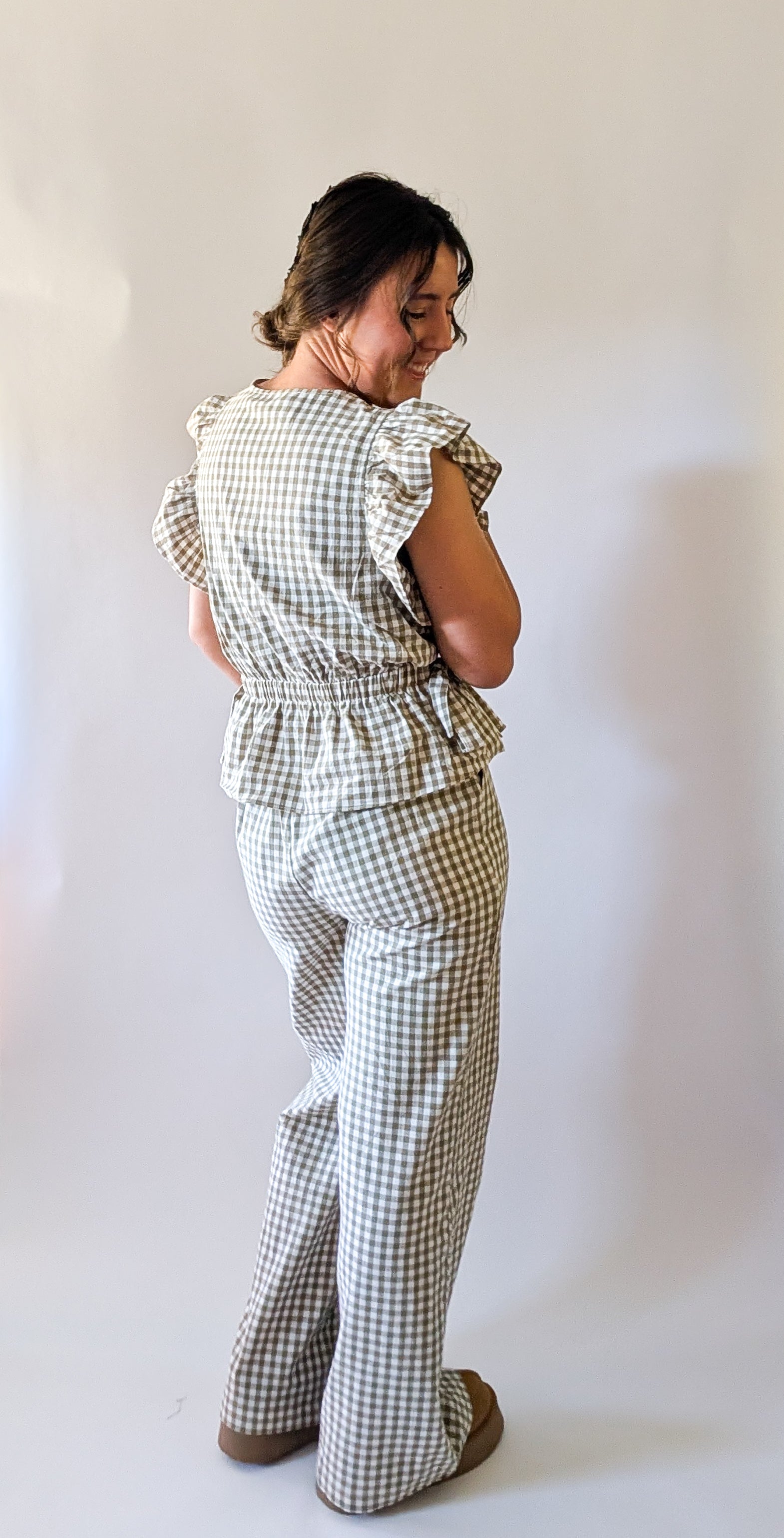 'Portland' Gingham Flair Pants in Olive