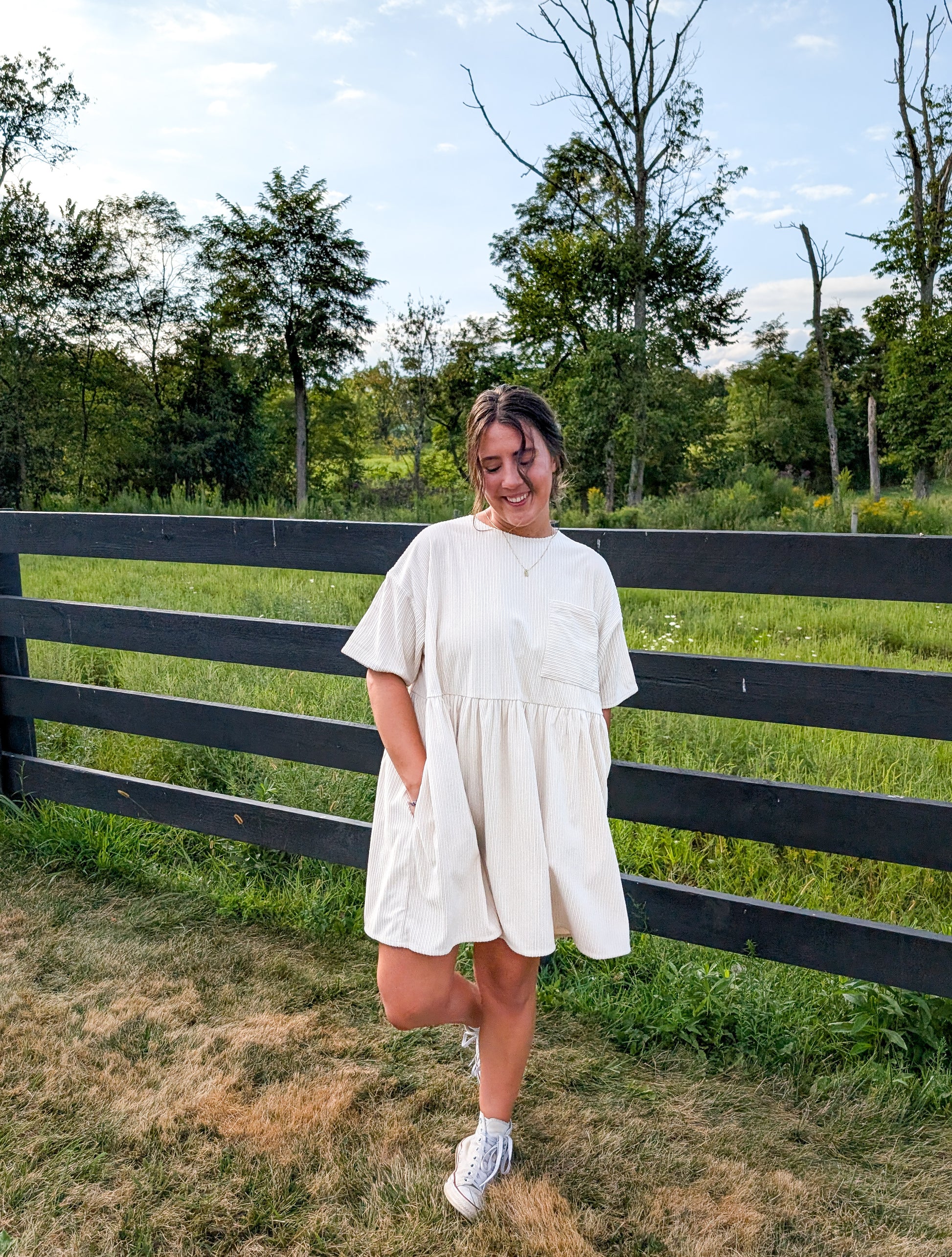 The Wyatt midi dress in a perfect transition piece for fall! with an elegant, oversized fit, Cordery fabric and easy to layer!